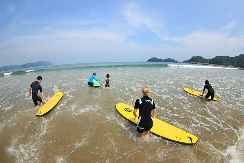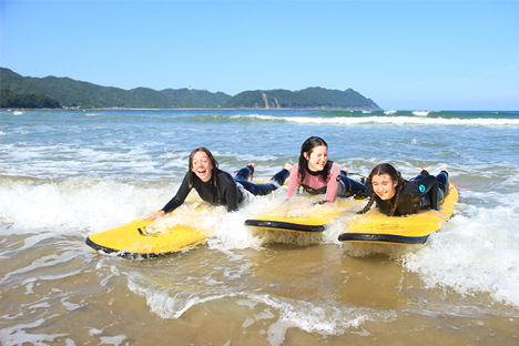 まずはサーフィンの楽しさを体験していただくことをコンセプトに、インストラクターのサポートのもと海の上でボードに乗るバランス感覚やパドリング、ボードの上に立って波に乗ることを体験し、慣れてきたらご自身でのテイクオフにも挑戦していただきます。