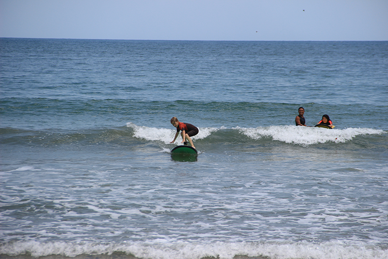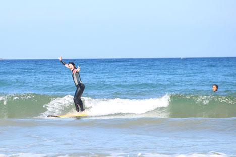 慣れてきたら自分でパドリングをして波をつかんでみましょう。